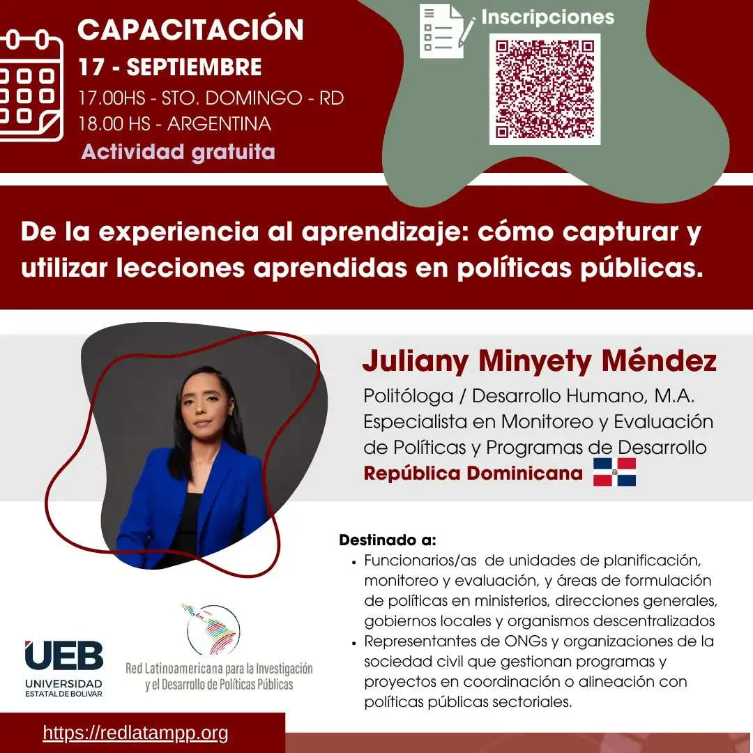 En el marco del Segundo Aniversario de la Red Latinoamericana para la Investigación y el Desarrollo de Políticas Públicas y junto a la Universidad Estatal de Bolívar (Ecuador), te invitamos a participar de la capacitación: